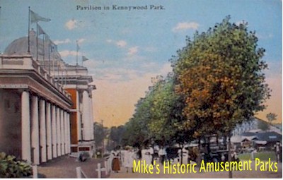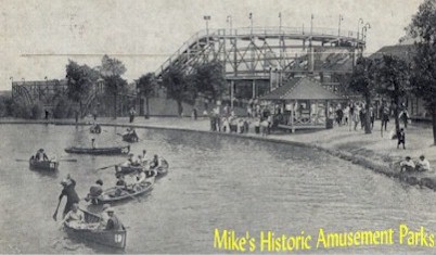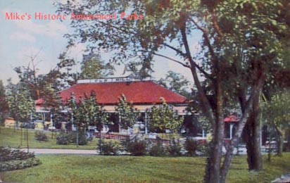 In this 1926 view of the park you can see the 1899 restaurant and Merry-Go-Round buildings, both of which still stand. The large bandstand in the background and the pony track in the foreground are long gone. |