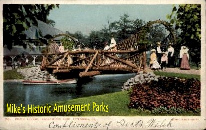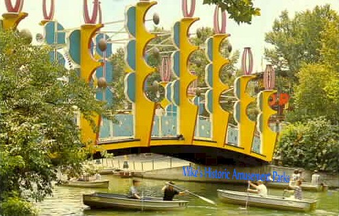 The bridge has changed numerous times throughout Kennywood's history and the present one sits just where the original one did. |