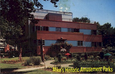 The art deco park office in the rear of this view was built in the 1930s. Since then it has been stripped of it's streamlined look and has been enlarged. |