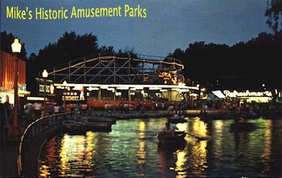 This early 1980s view of Kennywood shows little change. The buildings have been altered a bit and the old aluminum row boats are gone, but the Jack Rabbit and all the colorful lights, shimmering on Lake Kennywood after nightfall hasn't changed at all.