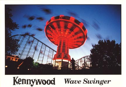 The Wave Swinger, added in 1984 was originally located wiere the seating area for the Kennyville Stage is now, across from Noah's Ark. For the 1994 season it disappeared and the following year reappeared in Lost Kennywood. |