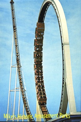 Caption: The Laser Loop catipults its riders into a thrill-a-second journey, as they go both forwards and backwards through this 72-foot high verticle loop. It's breath-taking!
