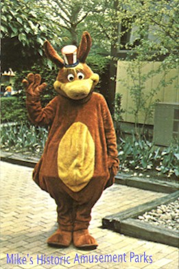 Caption: The mascot, mayor and favorite muppet at Kennywood is Kenny Kangaroo. His antics delight the little tots and amuse the big folk.