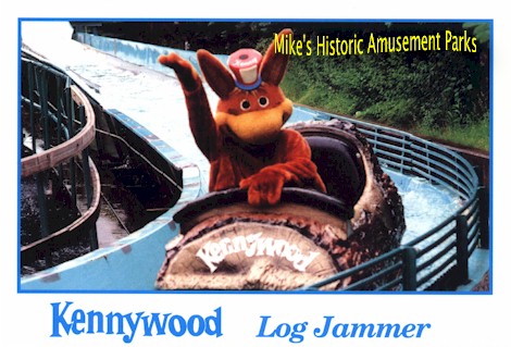 Caption: Official mascot of Kennywood, Kenny Kangaroo, loves the Log Jammer. |