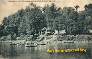 Ellwood City, founded in 1892 as a resort town, had a beautiful amusement park like almost every other city at that time. There was a time when about 2,000 parks existed around the country, many parks were built as "Trolley Parks", meaning they were built at the end of a trolley line, as a way to get people to ride the trolleys. Ellwood City's Rock Point Park, was built with almost the same concept in mind but as a "Railroad Park". Unfortunately, the beginning of the end of Rock Point occurred in 1914 when a spark from the train's engine started a fire that destroyed most of the park. Rock Point Park was one of the thousands of parks that didn't survive into the 1990's.